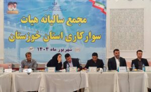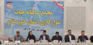 مجمع سالیانه هیئت سوارکاری استان خوزستان با ریاست دکتر بنی تمیم مدیر کل ورزش و جوانان خوزستان و اعضای محترم مجمع روز ۲۳ شهریور در اهواز برگزار گردید